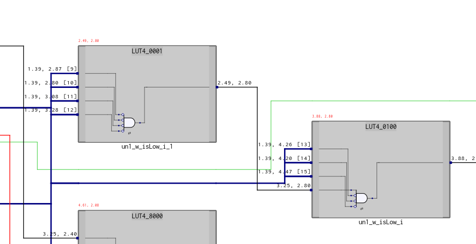 • since I have LUT4, then w_isLow, for example, will consist of two cascaded LUT4s, the output of the first of which will be one of the inputs of the second, therefore only 7 input bits can be used. This explains the constant 7 in localparam IGNORE_BITS
